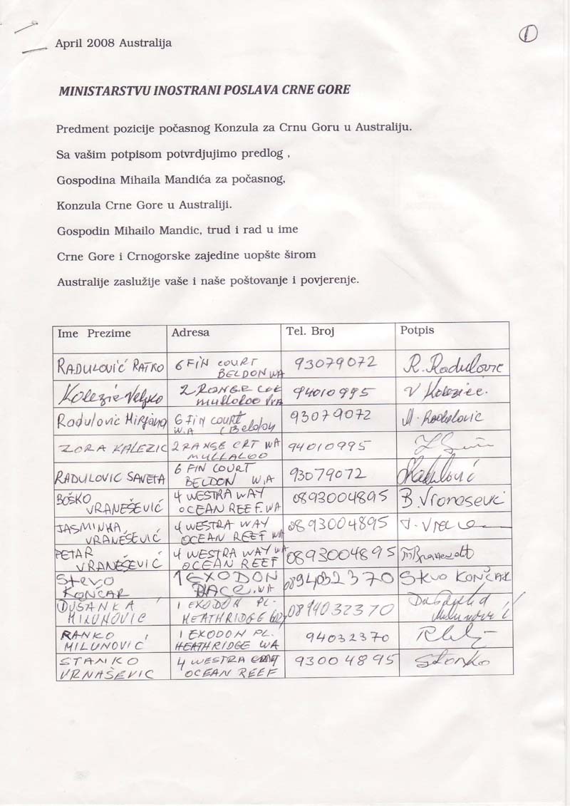 dana iz Perta je stigla peticija sa preko 50 potpisa naših iseljnika